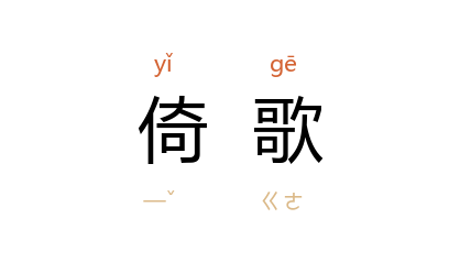 ⒊ 古代乐歌的一种。其伴奏有鼓吹而无弦乐。按,《清商曲辞·西曲歌》中的《青阳度》、《女儿子》、《来罗》、《夜黄》等篇均为倚歌。