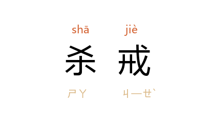 引宋 苏轼 《歧亭》诗叙:“则以前韵作诗,为杀戒以遗 季常。”《再生缘》第二五回:“真人点首称知道,杀戒开时就逞兇。”中国近代史资料丛刊《辛亥革命·蒙古起义清方档案·宣统三年十一月二十四日旨》:“尔 哲布增丹巴 坐牀已久,精通佛理,洞达安危,谅不至以一念贪嗔轻开杀戒。”