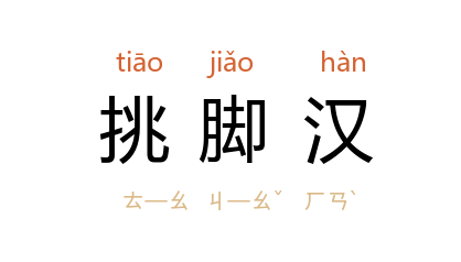 引《金瓶梅词话》第八八回:“贫僧只是挑脚汉。”《红楼梦》第六三回:“到了明日起迟了,人家笑话,不是个读书上学的公子了,倒像那起挑脚汉了。”