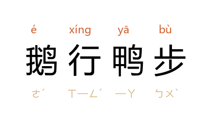 《水浒传·第三二回》:「你两个闲常在镇上抬轿时,只是鹅行鸭步。如今却怎地这等走的快?」