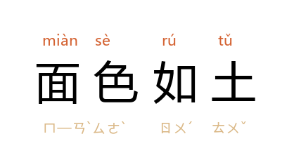 ⒈ 脸色像泥土一样。形容惊恐到了极点。也作「面如土色」、「面如灰土」。