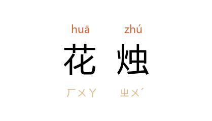 ⒉ 新婚。旧时结婚新房内,点有龙凤雕饰的蜡烛,后遂以花烛代指新婚。