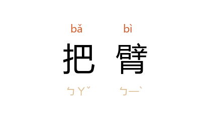 ⒈ 同“把4鼻”。握持手臂。表示亲密。谓按脉。谓亲切会晤。同“把4鼻”。