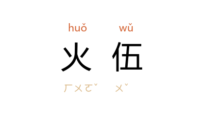 ⒈  泛指队伍。古代兵制,五人为伍,十人为火。
