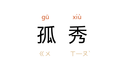 引北魏 郦道元 《水经注·江水二》:“江 南岸有山孤秀,从 江 中仰望,壁立峻絶。”唐 王勃 《慈竹赋》:“恐孤秀而成危,每群居而自守。”唐 李商隐 《题小松》诗:“怜君孤秀植庭中,细叶轻阴满座风。”《旧唐书·方伎传·叶法善》:“卓尔孤秀,泠然独往。”《四库全书总目·别集二五·考功集》:“其( 薛蕙 )诗格蔚然孤秀,实有自来,是其所树立,又不在区区文字间也。”
