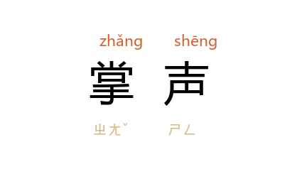 引魏巍 《东方》第五部第十三章:“坑道里顿时掀起一阵热烈的掌声。”孙犁 《澹定集·契诃夫》:“有的从一些当代名家的作品里去学习那些能以或是已经招致了采声和掌声的‘风格’。”