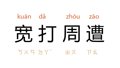 引元 关汉卿 《拜月亭》第三折:“我与你宽打周遭向父亲行説。”元 施惠 《幽闺记·幽闺拜月》:“和你宽打周折……説你小鬼头春心动也。”