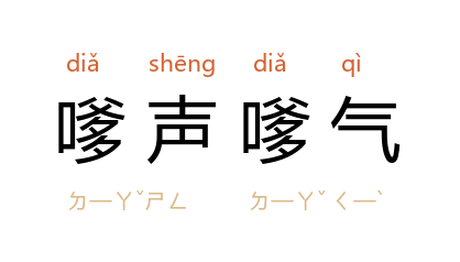 引周立波 《金戒指》:“只听见那女人嗲声嗲气地唱道:‘这几天,你不来,日子实难挨。’”《人民日报》1981.6.6:“小华 嗯嗯呀呀,嗲声嗲气地和奶奶应答着,心里甜丝丝的。”