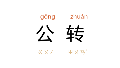 ⒈ 一个天体绕著另一个天体转动。如太阳系里的行星绕著太阳旋转、各行星的卫星绕著行星转,皆称为公转。
