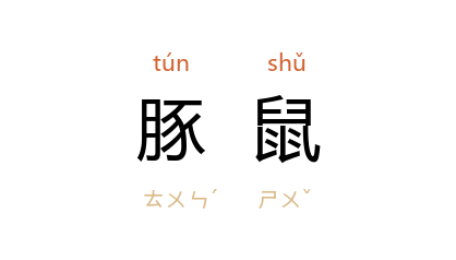 ⒉ 哺乳动物,身体像兔而较小,有须,耳短,前肢短,后肢长,无尾,毛白色带黄色或黑色的斑。亦名天竺鼠,通称荷兰猪。