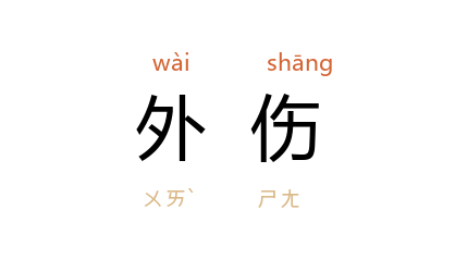 ⒉ 相对于七情内伤,可指六淫外邪所伤,如伤风、伤寒、伤湿、伤暑等。