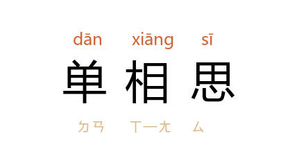 相思:想念。单恋,男女间仅一方爱慕另一方。