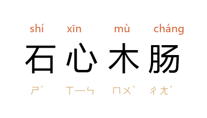 出处宋·苏轼《谢失察妖贼表》:“布衣蔬食,或木死于饥寒;石心木肠,誓不忘于忠义。”