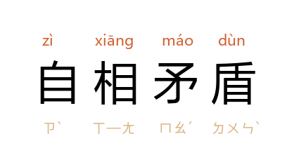 自己的言行前后互相抵触。矛:古时用来进攻的锐器;盾:古时用来防身的盾牌。