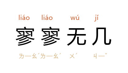 寥:稀少;很少;无几:没有几个。形容非常稀少;没有几个。