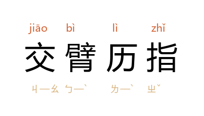交臂:两手反缚;历指:古代拶指的刑罚。象罪犯两手反缚、受拶指的刑罚一般。形容痛苦万状,毫无自由。