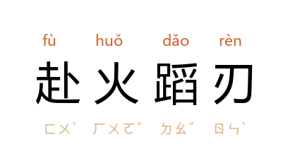 赴:前往;蹈:踩踏。赴汤蹈火。比喻不避艰险。