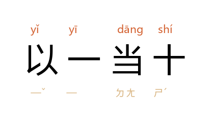 出处《战国策 齐策一》:“一而当十,十而当百,百而当千。”《史记 项羽本纪》:“楚战士无不一以当十,楚兵呼声动天,诸侯军无不人人惴恐。”