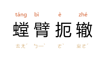 螳臂:螳螂的前腿;扼:控制;辙:行车的方向。螳螂举起臂来阻止车的前进。比喻自不量力。