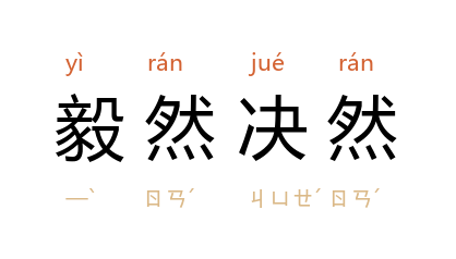 毅然:顽强地;决然:坚决地。形容意志坚强果断。