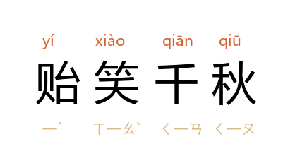 出处清·褚人获《隋唐演义》第47回:“到底甘尽苦来,一身不保,落得贻笑千秋。”