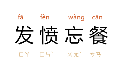 发愤:下决心,立志;餐:吃饭。发愤学习或工作,连吃饭都忘了。形容十分勤奋。