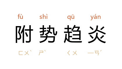 出处明·无名氏《赠书记·奚妈辨本》:“朝庭一时无公道,我难道附势趋炎,把是非颠倒。”