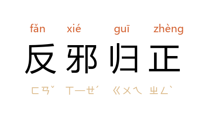 邪:不正当,不正派;归:回到。从邪路上回到正路上来,不再做坏事。