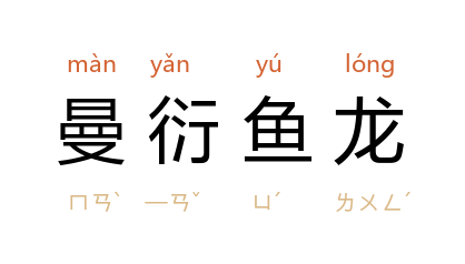 曼衍:亦作“漫衍”、“曼延”,巨兽名,古代仿照它排演百戏节目。鱼龙:古代百戏节目。古代演出的杂戏名。比喻事物的离奇变幻。亦作“鱼龙曼衍”。