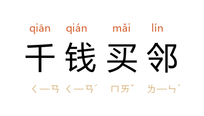 邻:邻居。花千万钱去买一个好邻居。指好邻居的难得可贵。