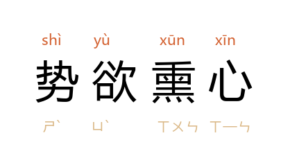 势:权势;欲:欲望;熏:侵袭。贪财权势的欲望迷住了心窍。