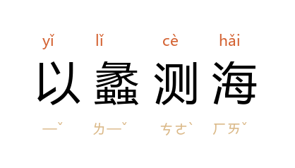 以:用;蠡:贝壳;利用贝壳当瓢;测:量。用贝壳来量海水。比喻观察或了解得很狭窄、片面;也比喻知识浅薄。