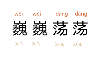语出《论语·泰伯》:“大哉尧之为君也!巍巍乎!唯天为大,唯尧则之。荡荡乎,民无能名焉。”朱熹集注:“巍巍,高大之貌;荡荡,广远之称也。”后以“巍巍荡荡”形容道德崇高,恩泽博大。