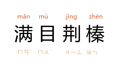 荆:荆条,灌木。榛:树丛。满眼看见的都是荆条和树丛。形容十分荒凉萧条的环境。