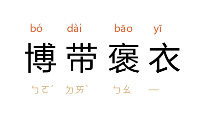 博:宽大;褒:阔。宽衣大带。指古代儒生的装束