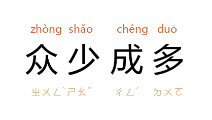 出处《汉书 董仲舒传》:“众少成多,积小致钜。”