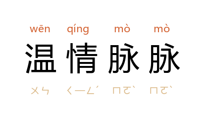 形容感情默默流露的样子。温情:温柔的感情;脉脉:默默地用眼神或行动表达用意。