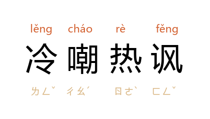 冷嘲:冷言冷语;尖刁刻薄的风凉话;热讽:辛辣难忍的讽刺语。用尖锐、辛辣的语言进行讥笑和讽刺。