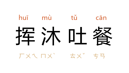 例子南朝·宋·范晔《后汉书·文苑传·高彪》:“昔周公旦,父文兄武,九命作伯,以尹华夏,犹挥沐吐餐,垂接白屋,故周道以隆,天下归德。”