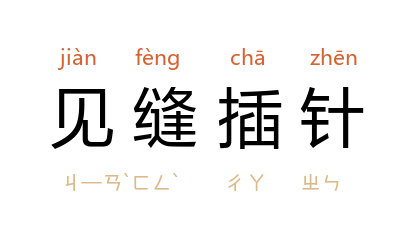 缝:缝隙;空子。看见缝隙就插针进去。比喻善于利用一切可供利用的时间和空间。