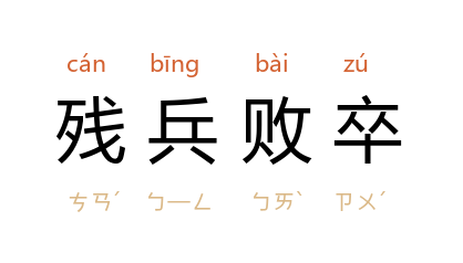 残:残余的,不完整的;败:输。战败后剩余的兵卒。指被击溃的军队或势力。