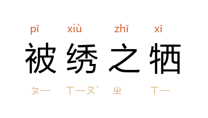 被:通“披”;牺:祭祀用的牲畜。披着锦绣的牲牛。比喻求得功名利禄而不能全余生的人。