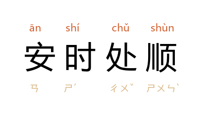出处先秦 庄周《庄子 养生主》:“适来,夫子时来;适去,夫子顺也。安时而处顺,哀乐不能入也。”
