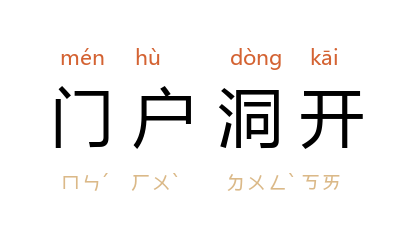 门户:房屋的出入处。比喻险要的地方。大门完全敞开,无遮无拦。