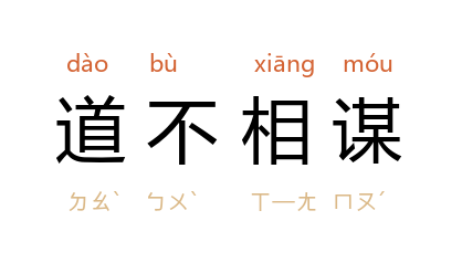 出处语出《论语·卫灵公》:“子曰:‘道不同,不相为谋。’”