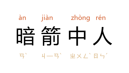 暗:暗中;箭:放箭;中:中伤。放冷箭伤害人。比喻暗中用阴险的手段攻击或陷害别人。
