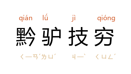 黔:今贵州省;穷:尽。黔地的驴;本领穷尽了。比喻极为有限的一点本领也用尽了。