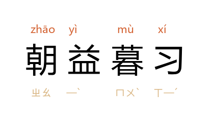 朝:白天;益:增加;暮:晚上。白天学习新知识,晚上就温习。形容学习用功