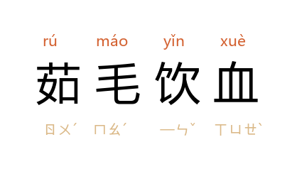 出处西汉 戴圣《礼记 礼运》:“未有火化,食草木之食,鸟兽之肉,饮其血,茹其毛。”