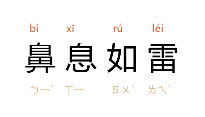 鼻息:鼾声。打呼噜的声音就象打雷一样响。形容熟睡时鼾声大作。